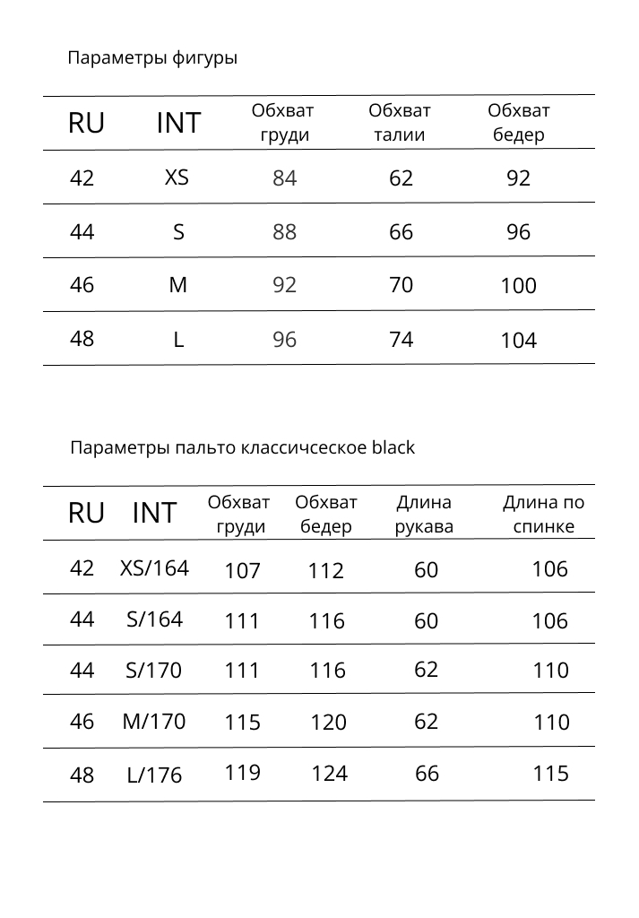 Параметры модели 180/78/61/91